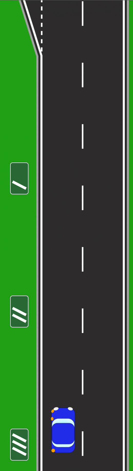Check your mirrors and signal left as the countdown begins. Remember to maintain your speed while still on the dual carriageway.