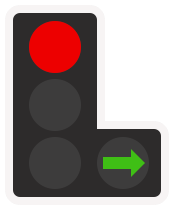 If a green filter arrow pointing to the right appears in addition to a round green light, traffic turning right is now being given priority over oncoming traffic. After checking it is safe, anyone waiting to turn right can proceed unimpeded.