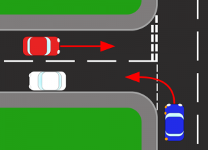 This section is about turning left from a major road into a minor road, or to put it another way, from a main road into a side road.